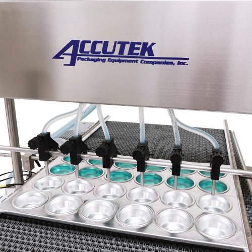 The Automatic Bakery Tray Depositor utilize Accutek Packagings timed flow volumetric filling principle to automatically deposit creams and batters at speeds of up to 100 doses per minute.