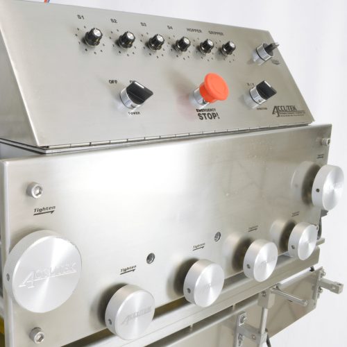 Accutek’s Tabletop Spindle tightener capping machine tightens screw-on caps from 15mm to 70mm in diameter.