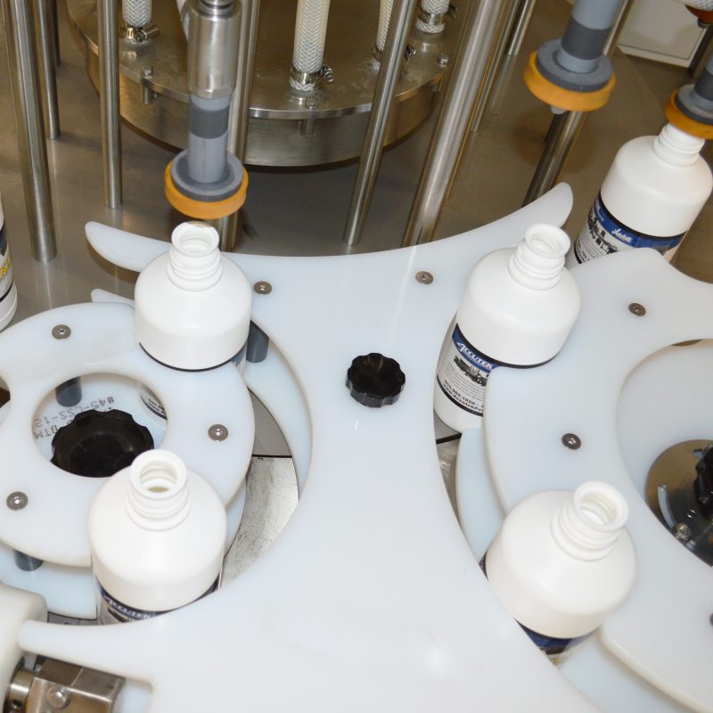Accutek’s Semi-Automatic Pressure Overflow Fillers (SAPOF) are well suited filling machines for filling liquids with low to medium viscosities and are perfect for products that foam.