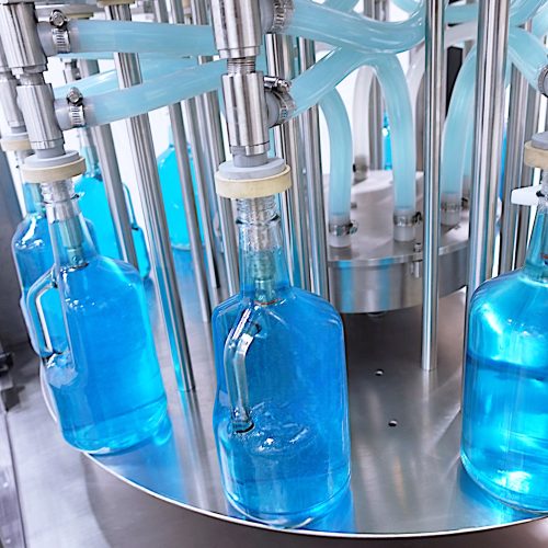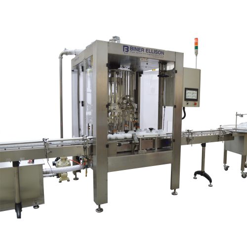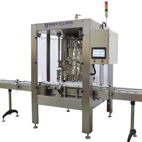 Automatic pressure overflow fillers are best suited for low to medium viscosity (200 cps) liquids. The precision engineered overflow nozzles guarantee that every container is filled to the same visual level.