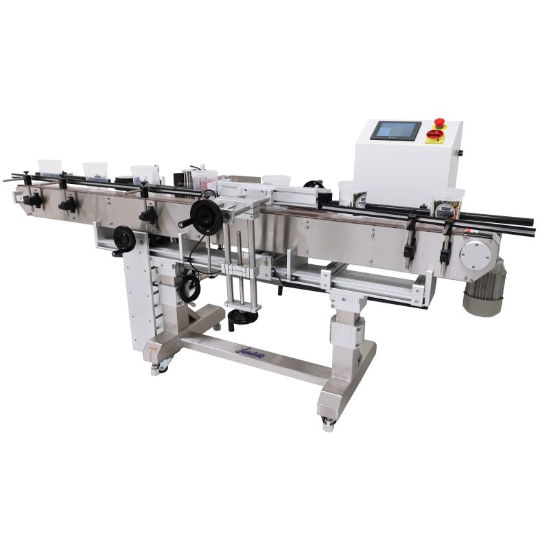 Labelette’s (Semi-Automatic Pressure Sensitive) SPS-104 is an economical and efficient labeling machine for round containers. The unit is manufactured from Stainless Steel and anodized aluminum creating a durable but portable machine.