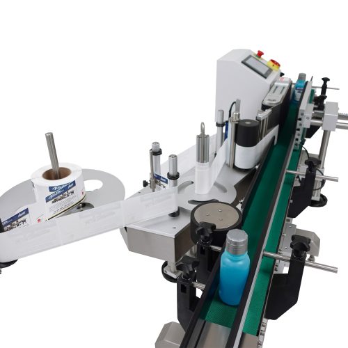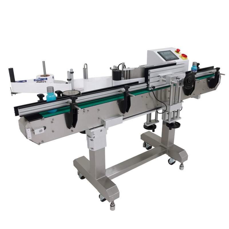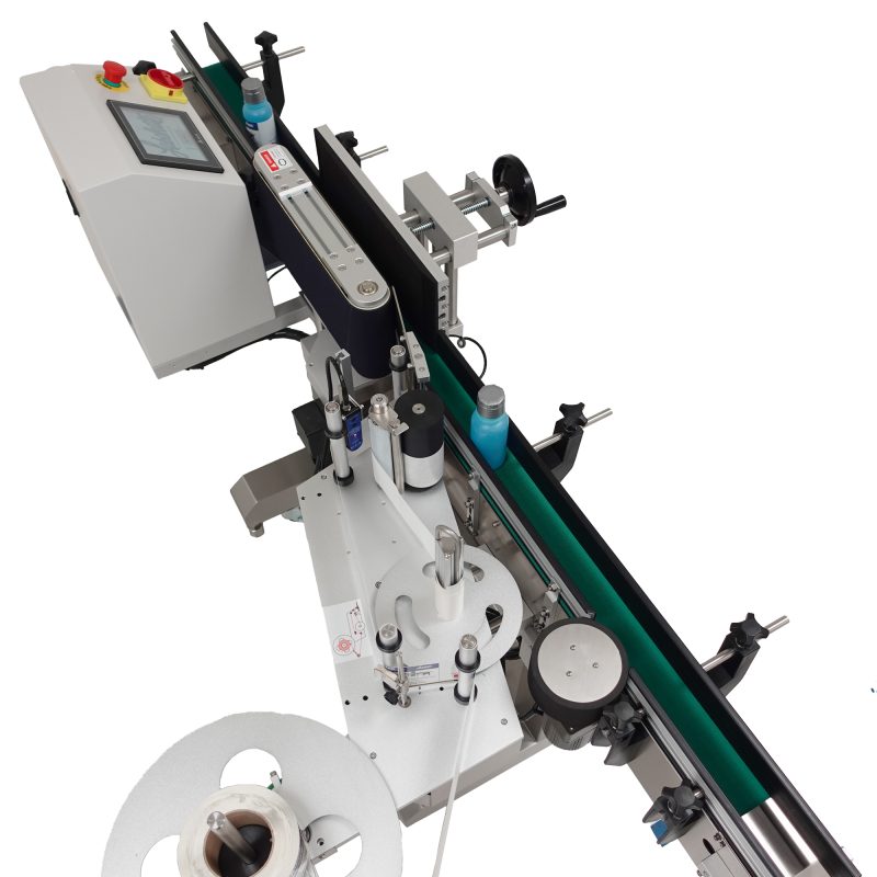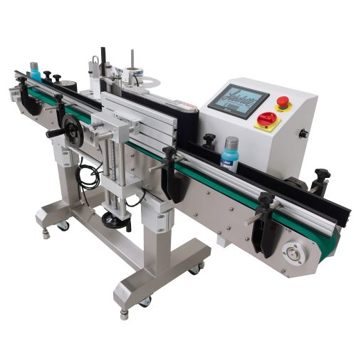 The labeling machine APS-104 Top Labeler is economical, self-contained and easy to operate. This automatic labeling system comes equipped with a height adjustable 4 ft. variable speed belted conveyor.