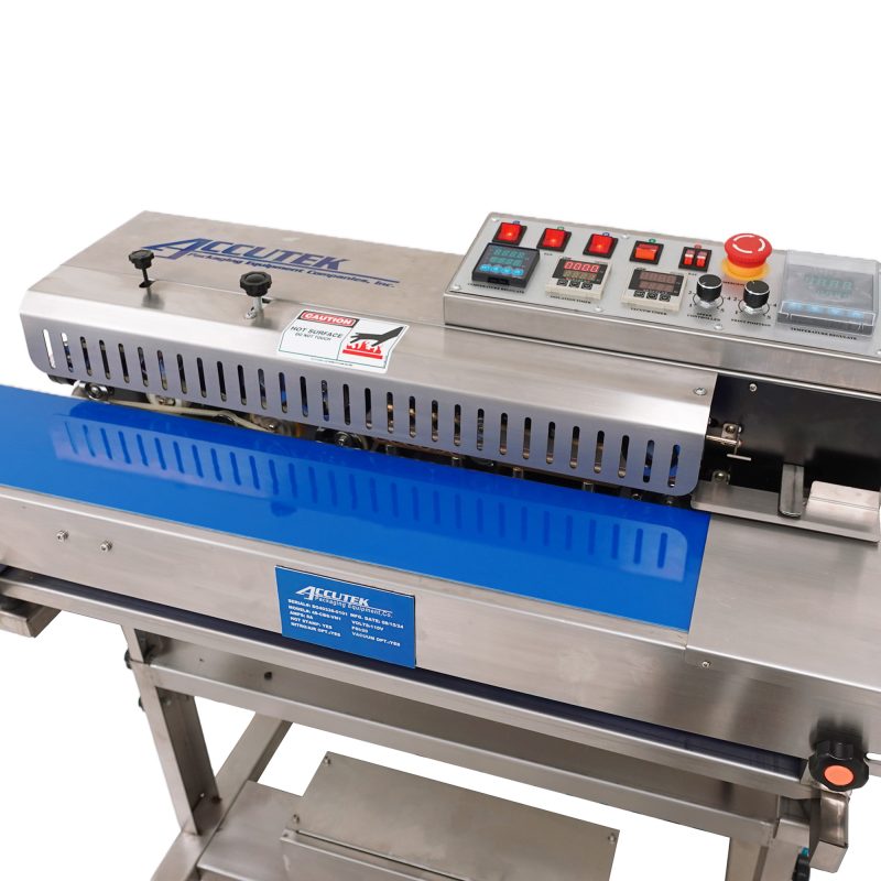 These machines can be used in multiple industries, including food, medicine, chemicals, agriculture, etc. If you’re considering using Accutek’s horizontal band sealer for your product(s), talk with us so we can make sure that your products are compatible with this machine.