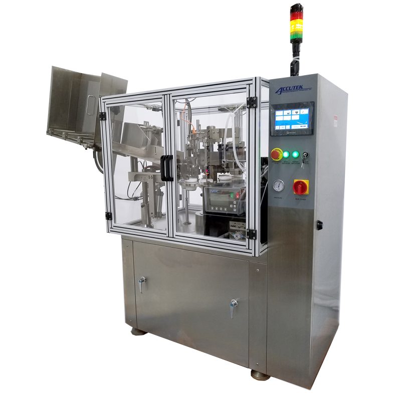 The TFS-1PT Tube Filler Sealers machines are heavy duty stainless steel fillers suitable for filling all kinds of semi-viscous and viscous products into plastic tubes. Plastic tubes are then internally heated and can be embossed with an optional date and lot number coder. The TFS machines are great for use in the pharmaceutical, food, cosmetic and chemical industries. Tube feeding, marking identification, filling, folding or sealing, code printing, and finished product output are all conducted by a fully automated touch screen control system with help menus. The TFS tube filler sealers offer quick and easy adjustment, making these machines simple to operate and maintain.