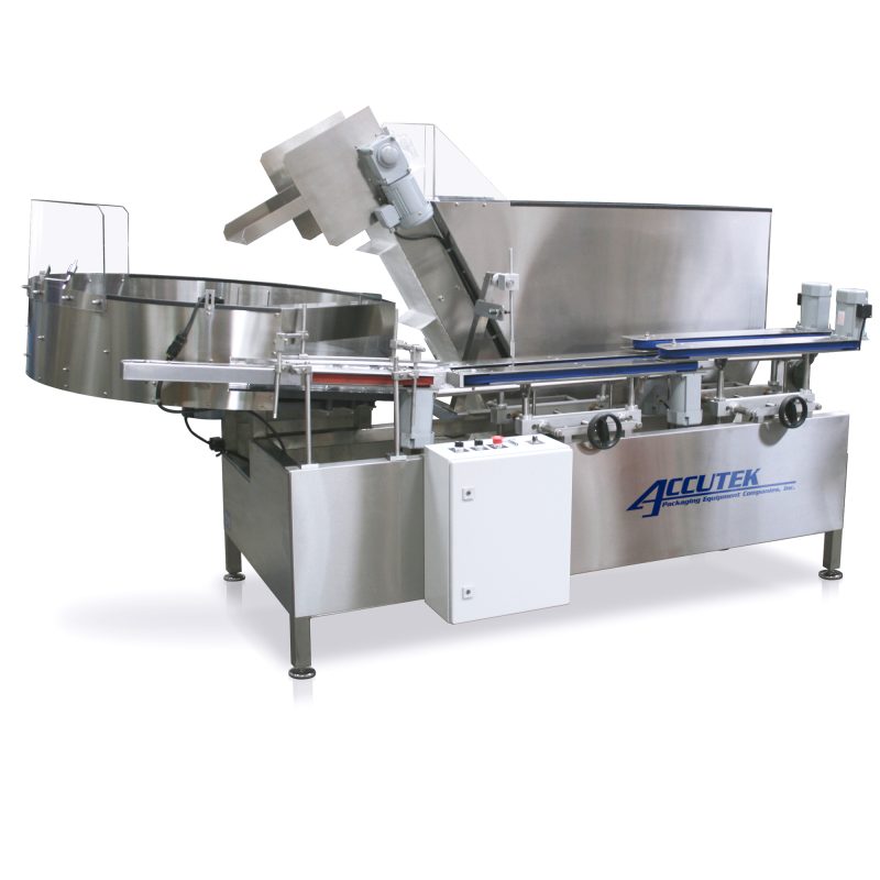 These machines are engineered to provide a floor-level loading source for containers, orient them, and deliver them to an Accutek or end user-supplied conveyor.